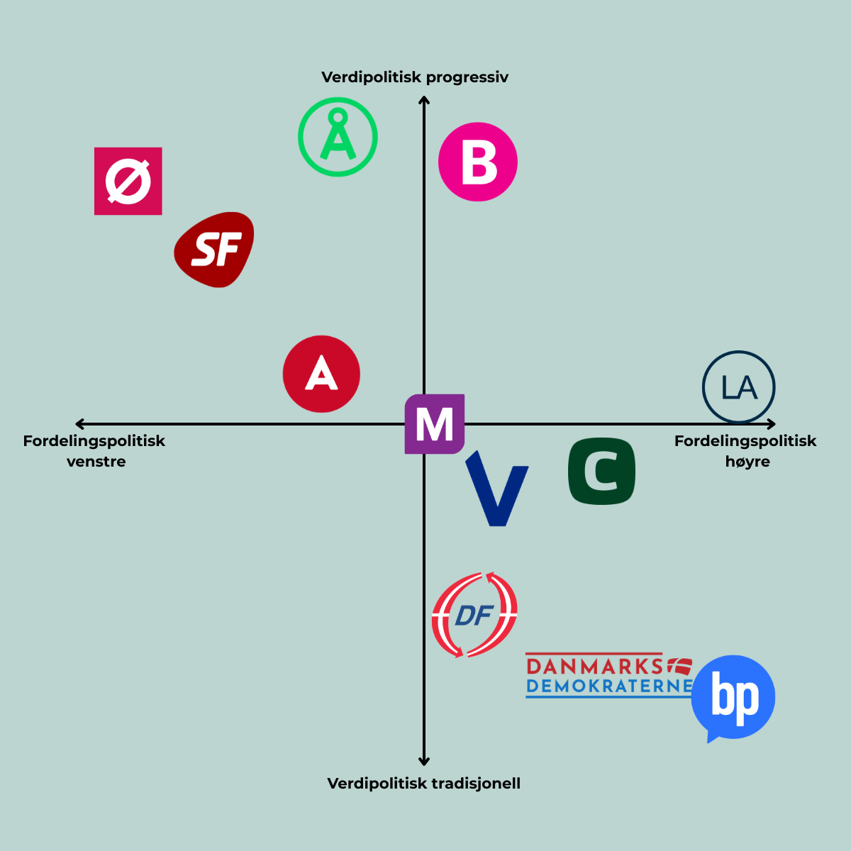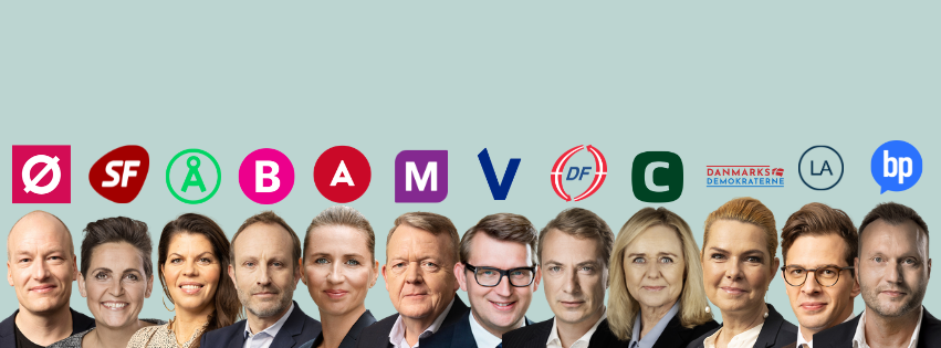 Danmarksdemokraterne (Æ): Borgerlig parti med stram integrasjonspolitikk. Ledes av Inger Støjberg, tidligere folketingspolitiker for Venstre.